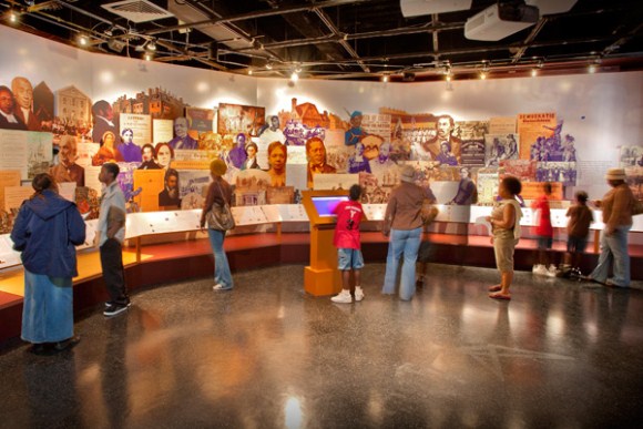 Exhibit themes include entrepreneurship, environment, education, religion and family traditions of the African American population, played out through interactive displays, video projections and vivid photography.